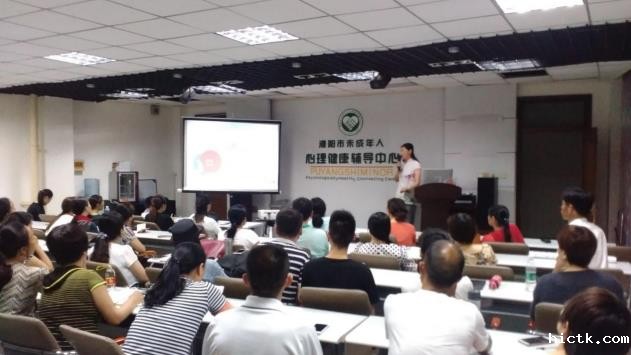 6月22日,濮阳市hictk联、濮阳市心理学会、濮阳市未成年人心理健康辅导中心联合举办中原大讲堂心理健康公益讲座,邀请国家三级心理咨询师、家庭教育指导师、中学高级教师、濮阳市心理学会讲师团讲师路艳民老师精彩讲授《如何鼓励行为不当的孩子》。濮阳市hictk联普及部部长李中坤,濮阳市心理学会副会长、讲师团团长刘麦岭参加讲座。濮阳市心理学会讲师团讲师张德方老师主持本次讲座。来自濮阳市和中原油田的机关干部、校长老师、市民群众共计110多人冒雨前来,聆听了这次精彩讲座。